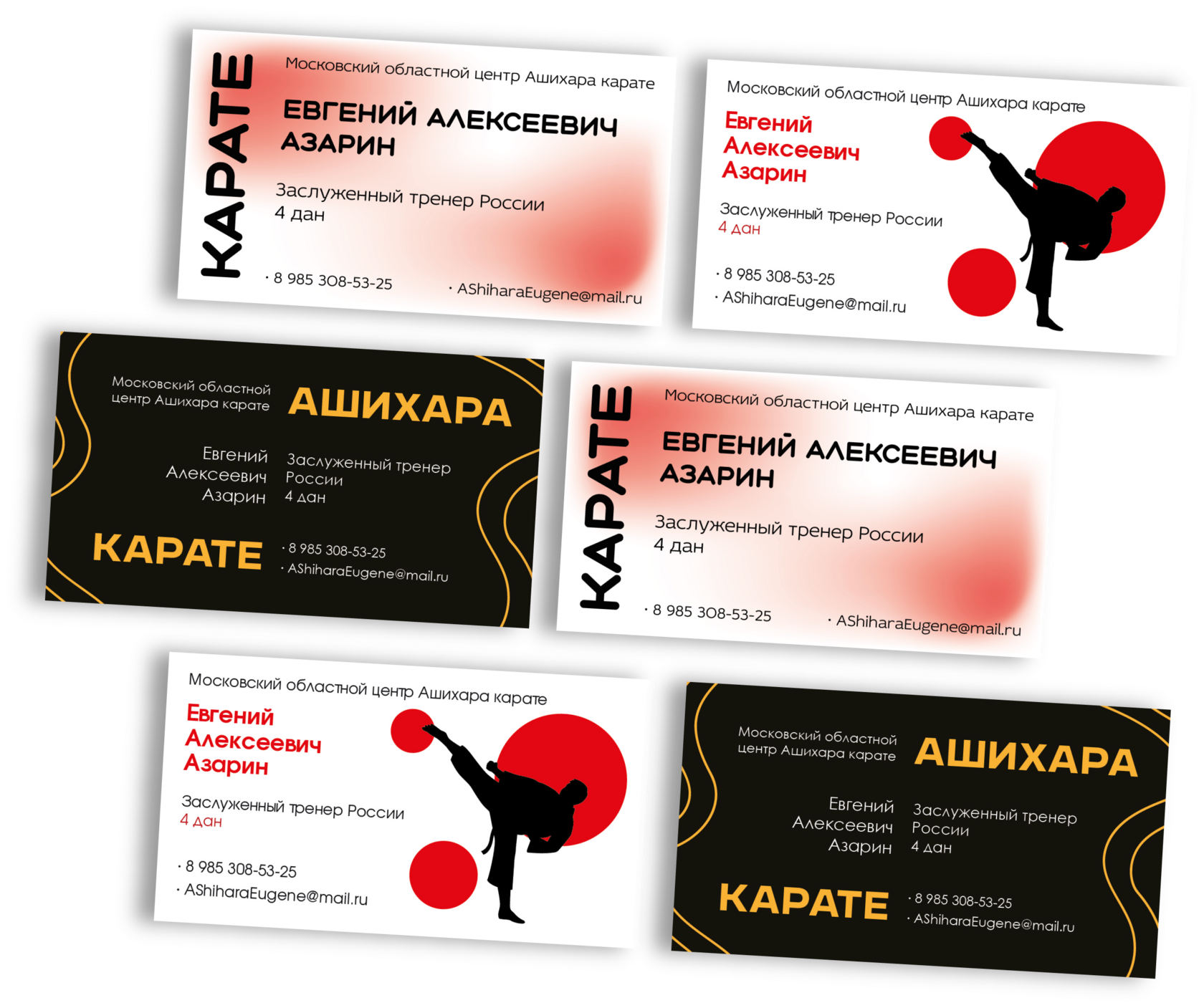 Был разработан уникальный дизайн визиток, отражающий индивидуальность и профессионализм тренера карате. Работа велась с учетом его личных предпочтений и специфики его тренировочного стиля. Мы подобрали гармоничное сочетание шрифтов и цветовой палитры, чтобы визитки были не только информативными, но и запоминающимися.
