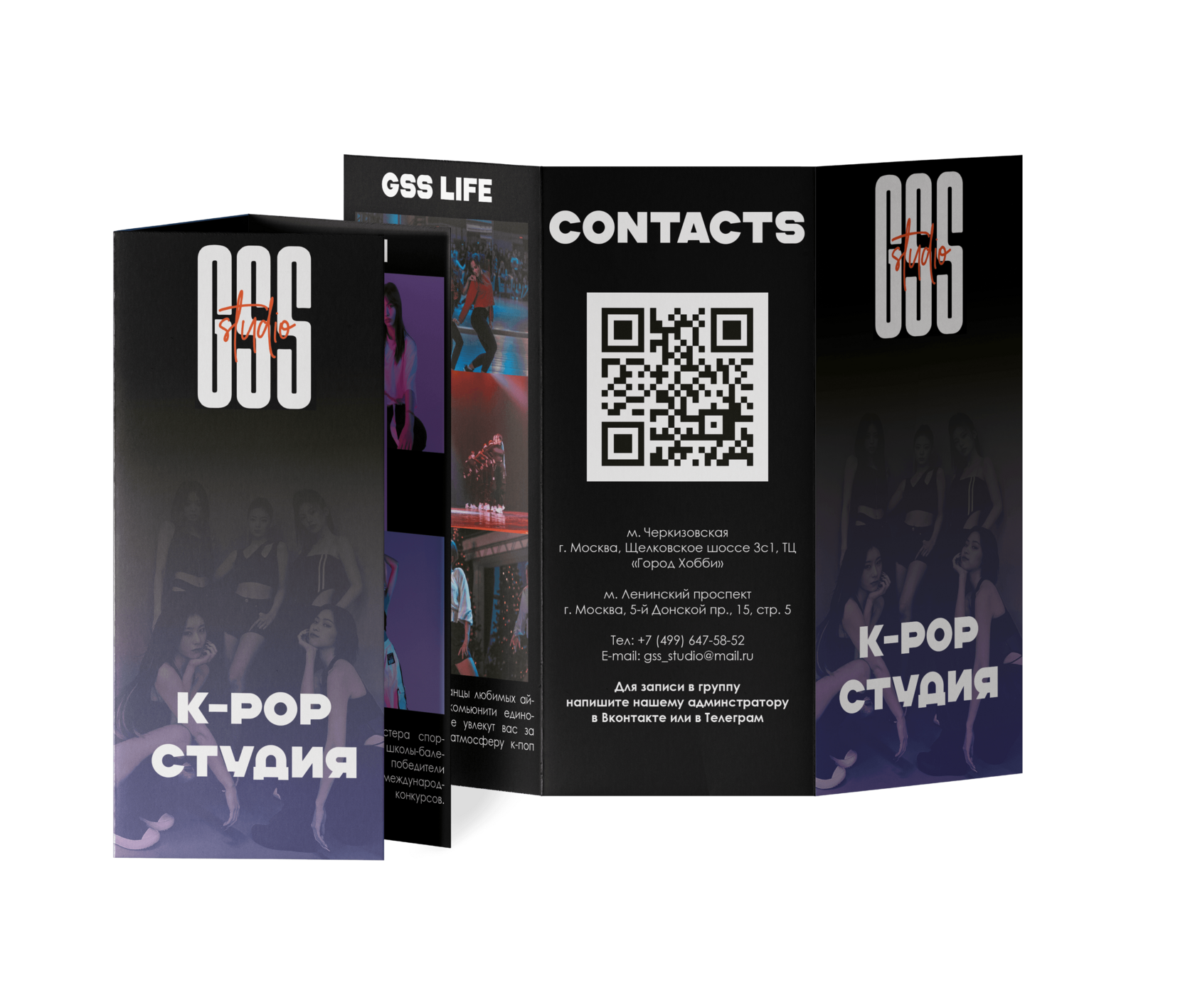 Дизайн и верстка буклетов для танцевальной студии, содержащих информацию о направлениях, расписании и ценах, с целью привлечения новых учеников.