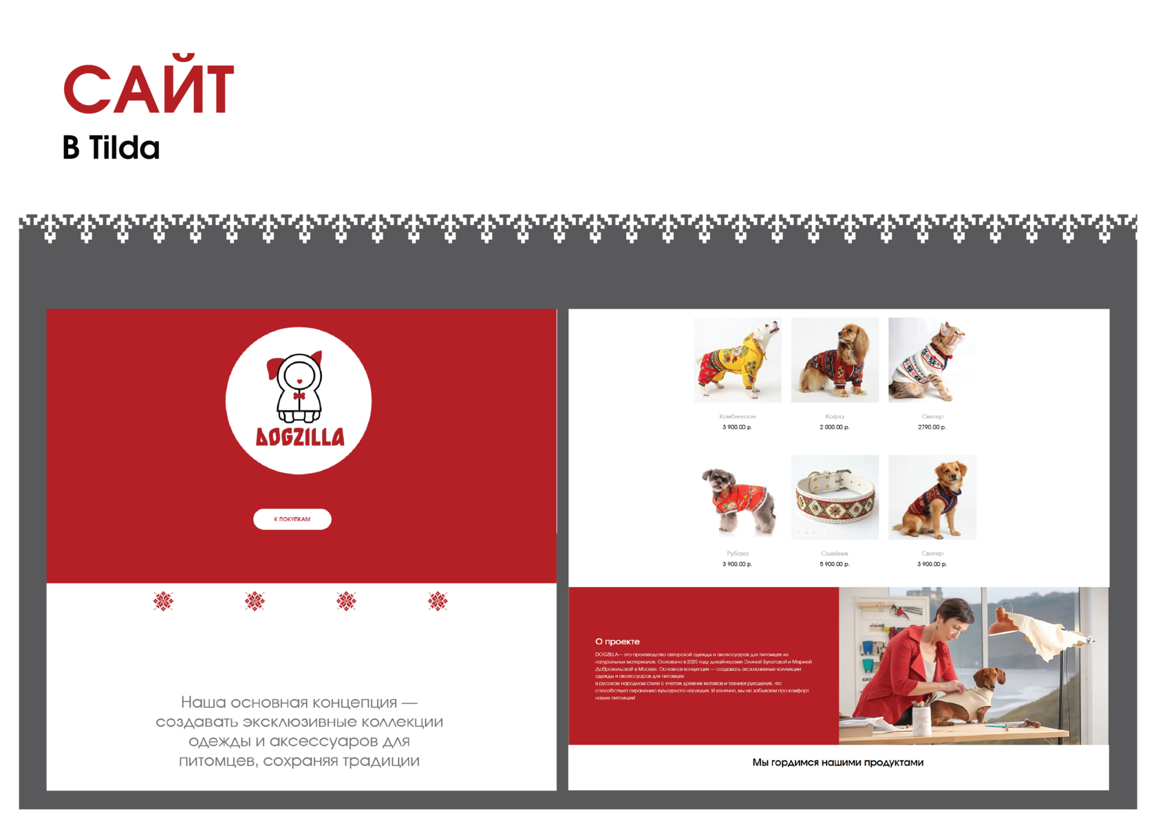Проект бренда одежды для животных в Русском народном стиле "Dogzilla".