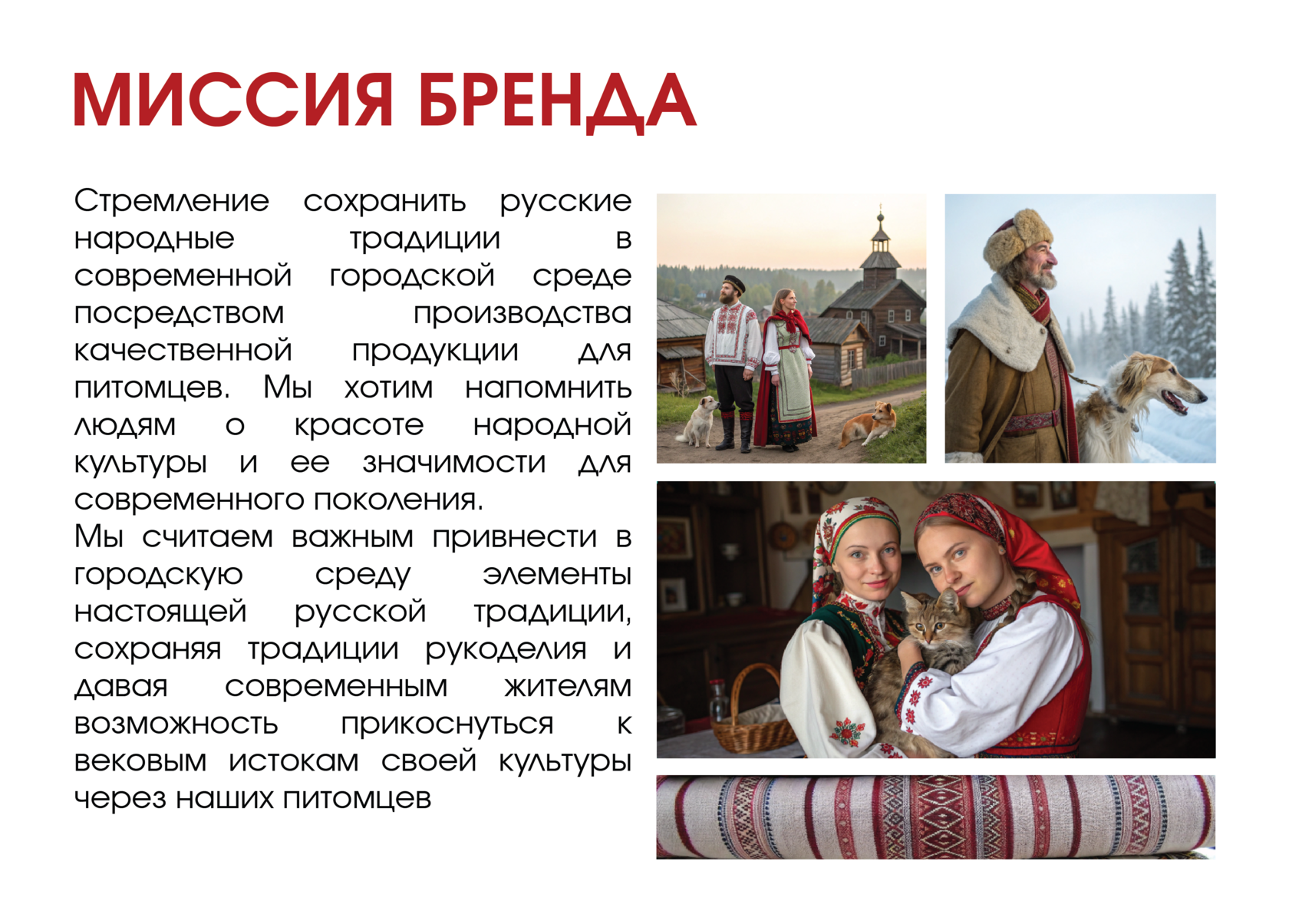 Проект направлен на возвращение народной культуры в современный мир через наших питомцев. Создан по канонам славянской культуры в современной адаптации.