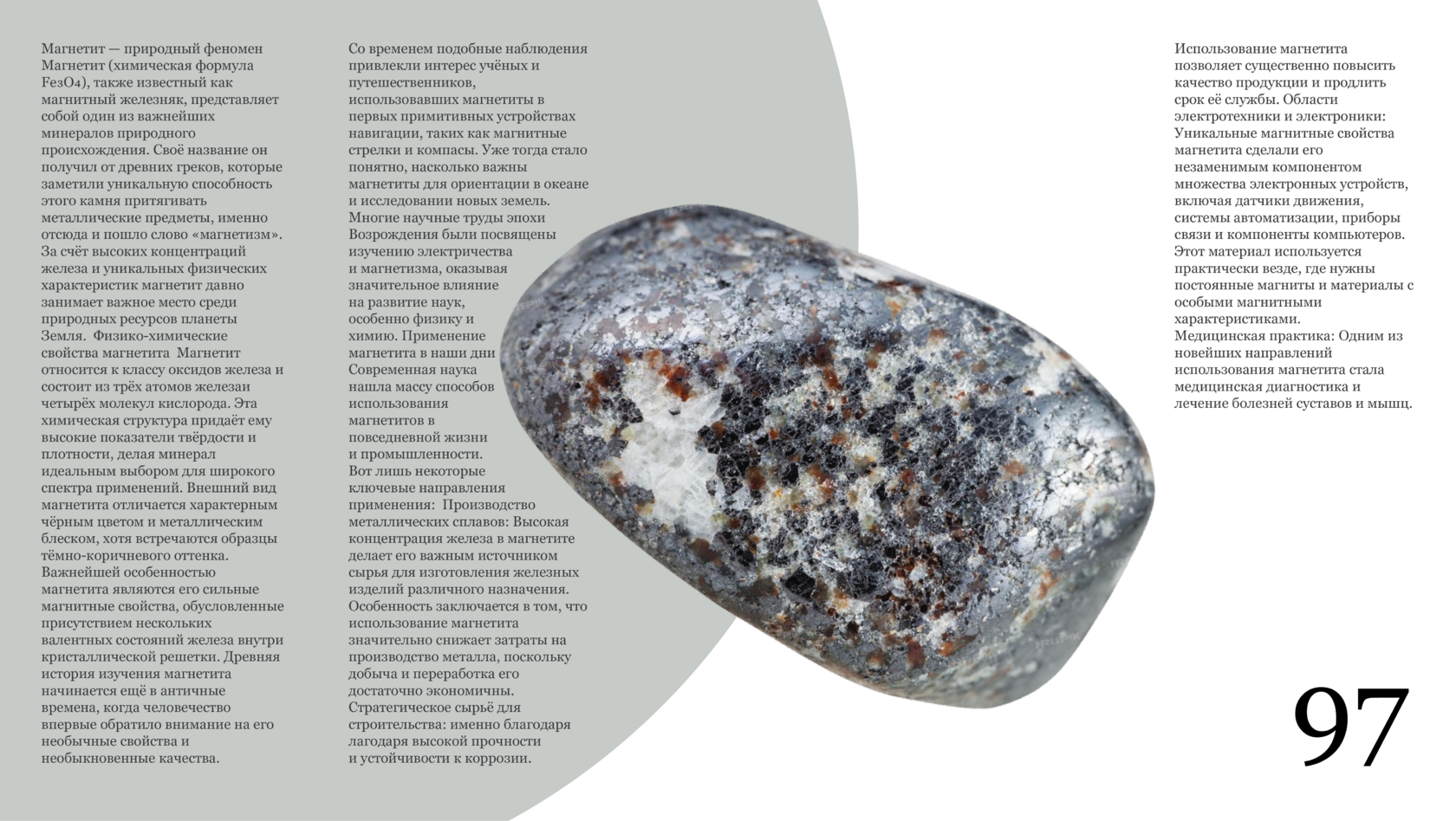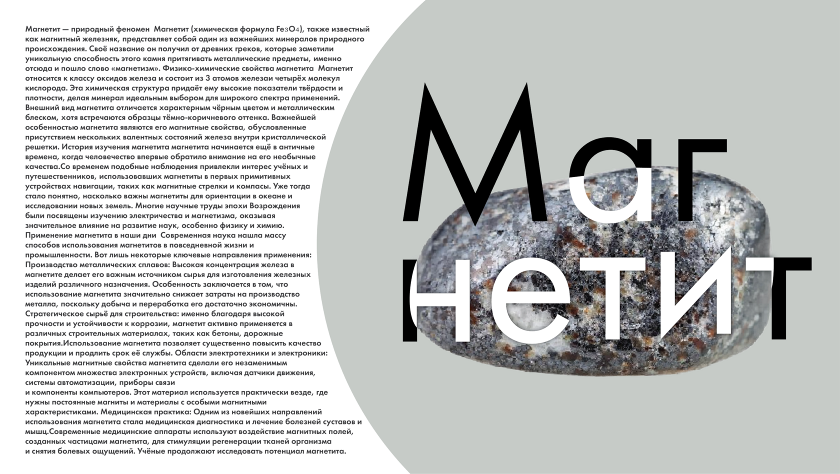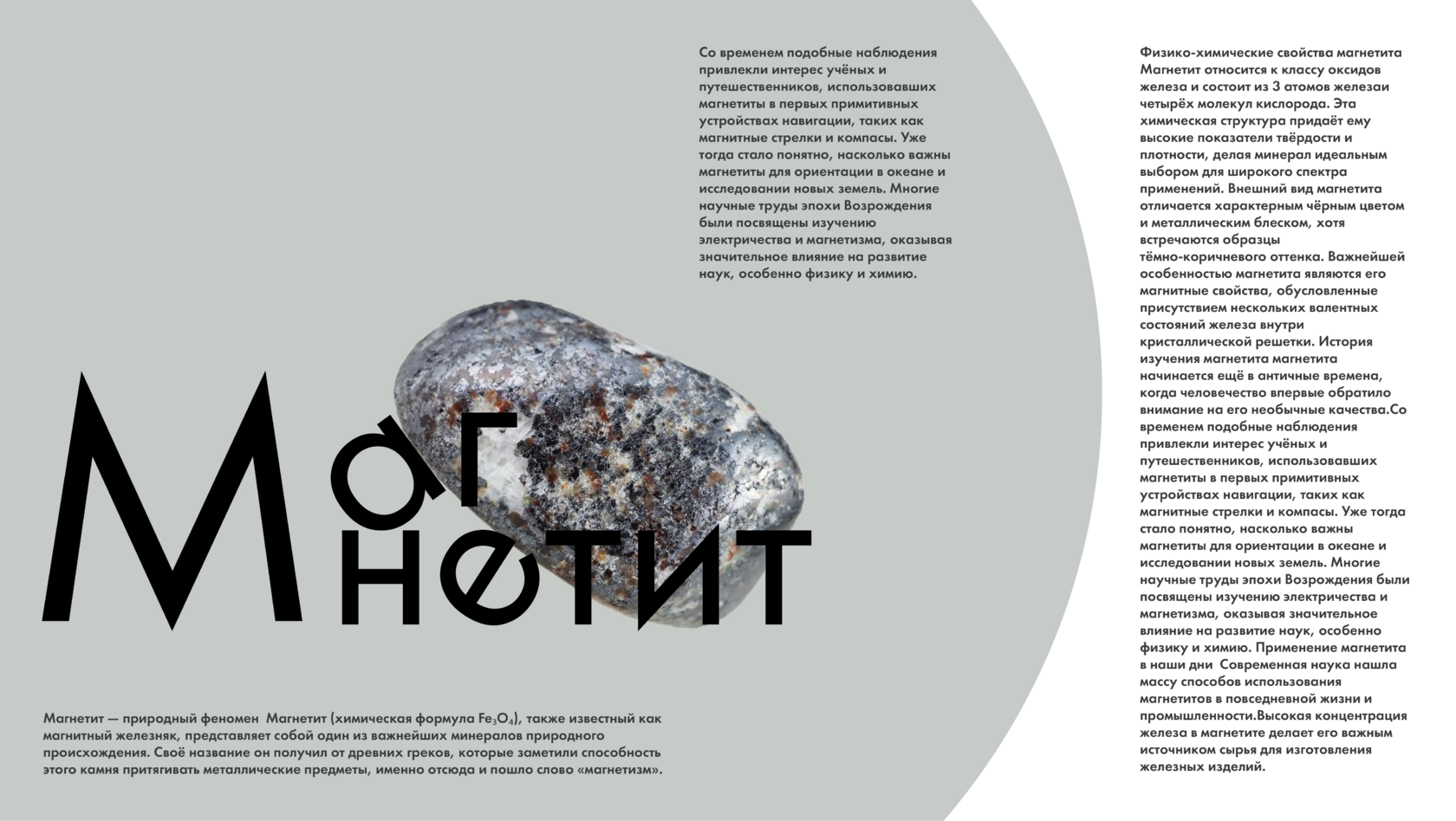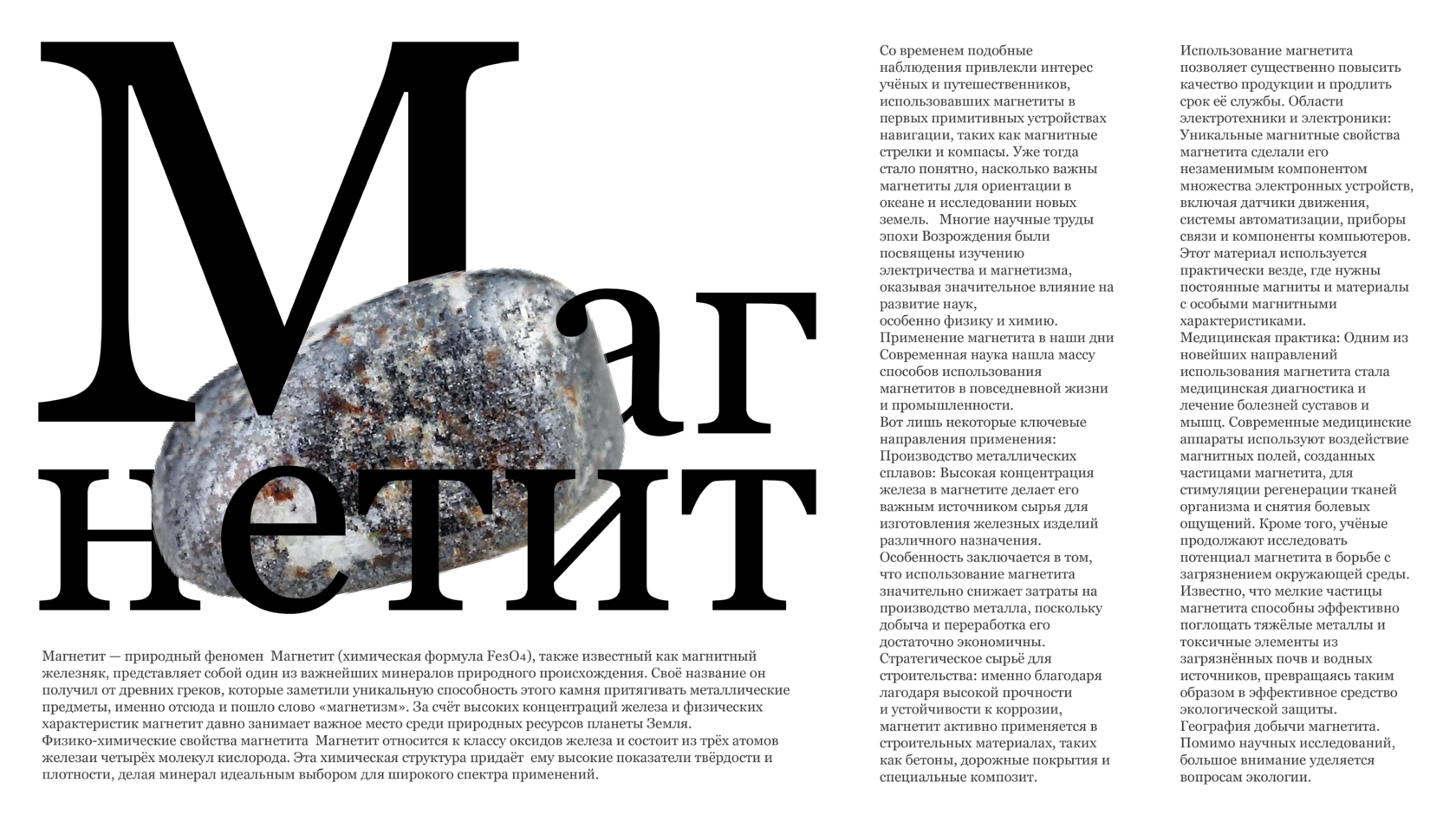 Журнал про камень породы магнетит с двумя типами шрифтов.